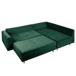 Norrwood Ecksofa Meyford - Samt Ravi: Antikgrün - Ottomane davorstehend rechts - Mit Hocker