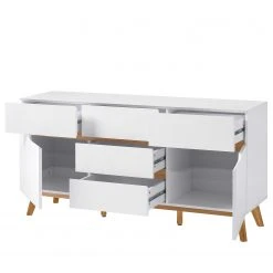 - Front & Korpus: MDF (Mitteldichte Holzfaserplatte), furniert
