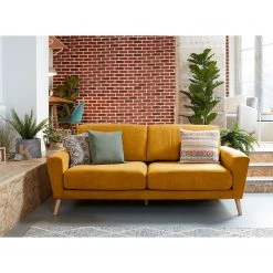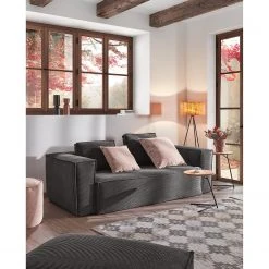 Loftscape Sofa Kayena (3-Sitzer) – Flachgewebe – Webstoff Inas: Dunkelgrau – Buche Dunkel