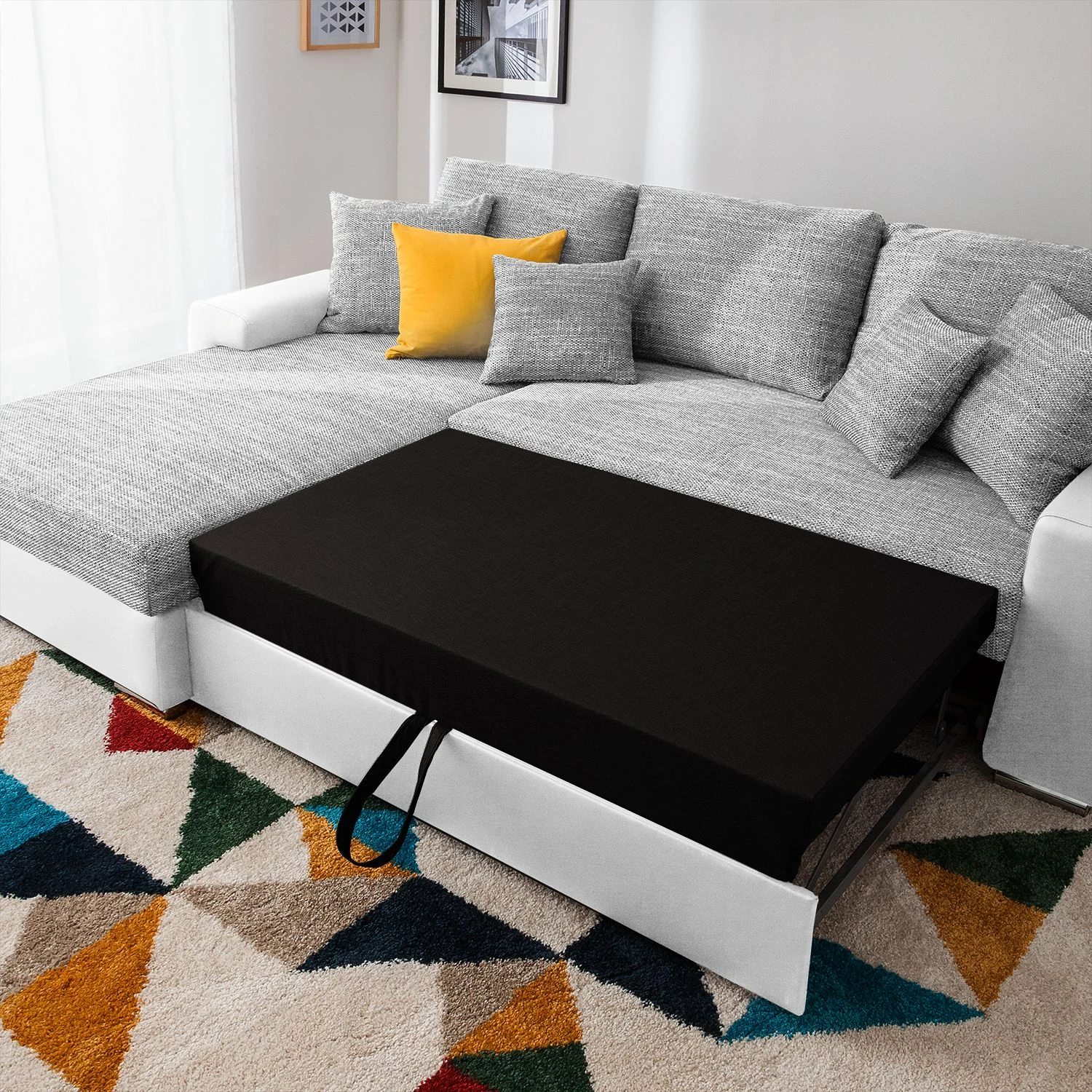Fredriks Ecksofa Dulmen – mit Schlaffunktion / beidseitig montierbar – Kunstleder/Strukturstoff – Weiß / Hellgrau