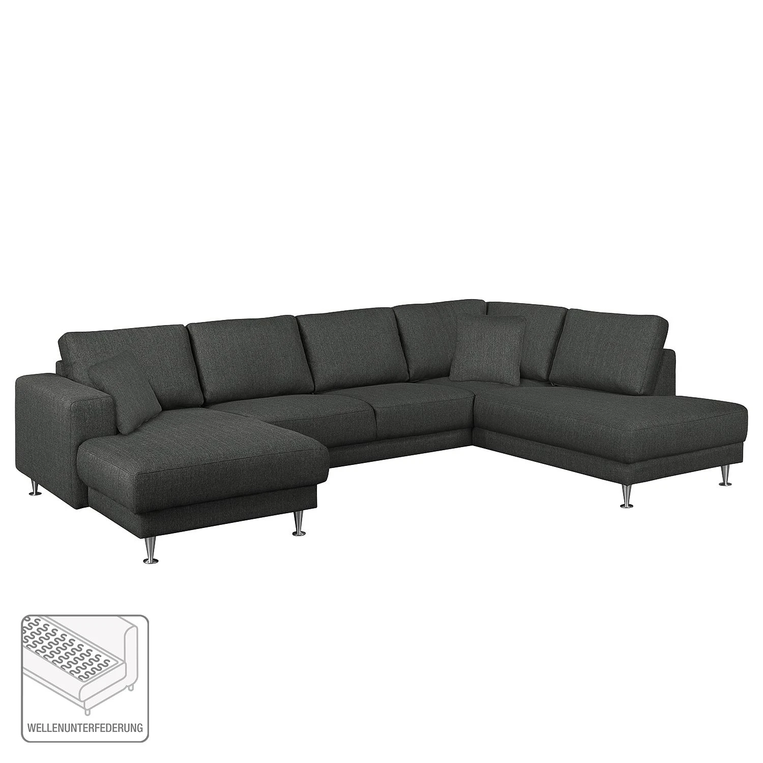 - Lieferumfang: Wohnlandschaft inkl. 2 Kissen, ohne Dekoration