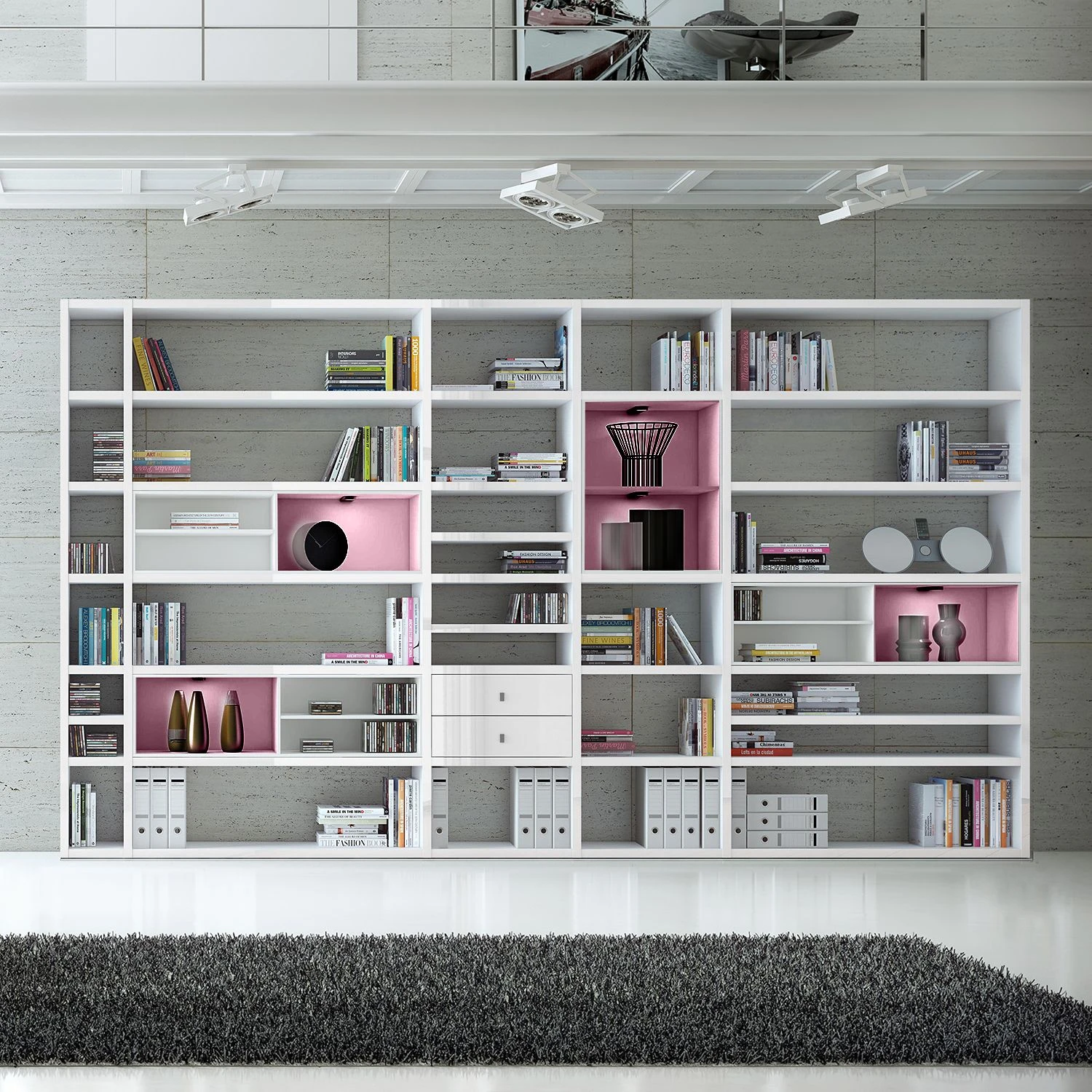 - Lieferumfang: XXL Regalwand ohne Dekoration