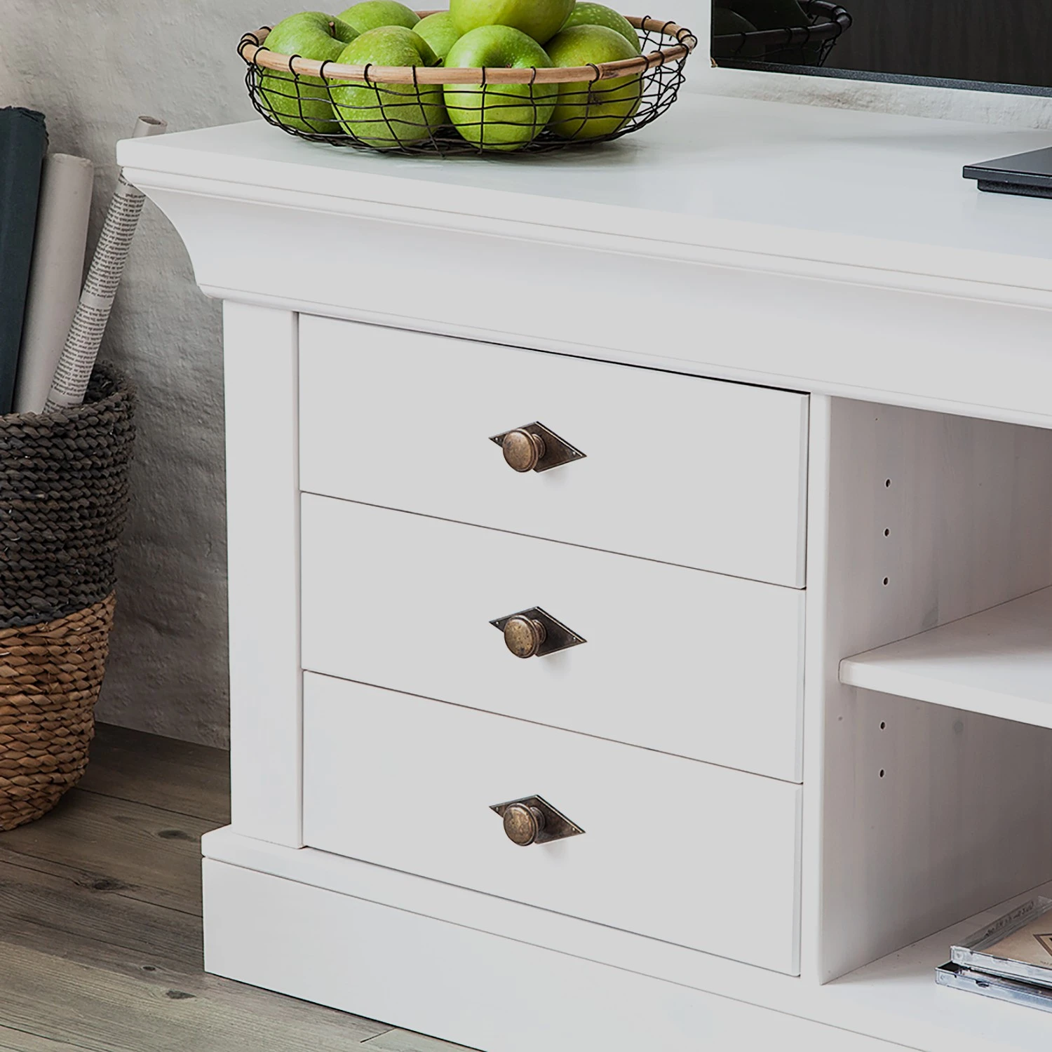 - Lieferumfang: TV-Lowboard ohne Dekoration