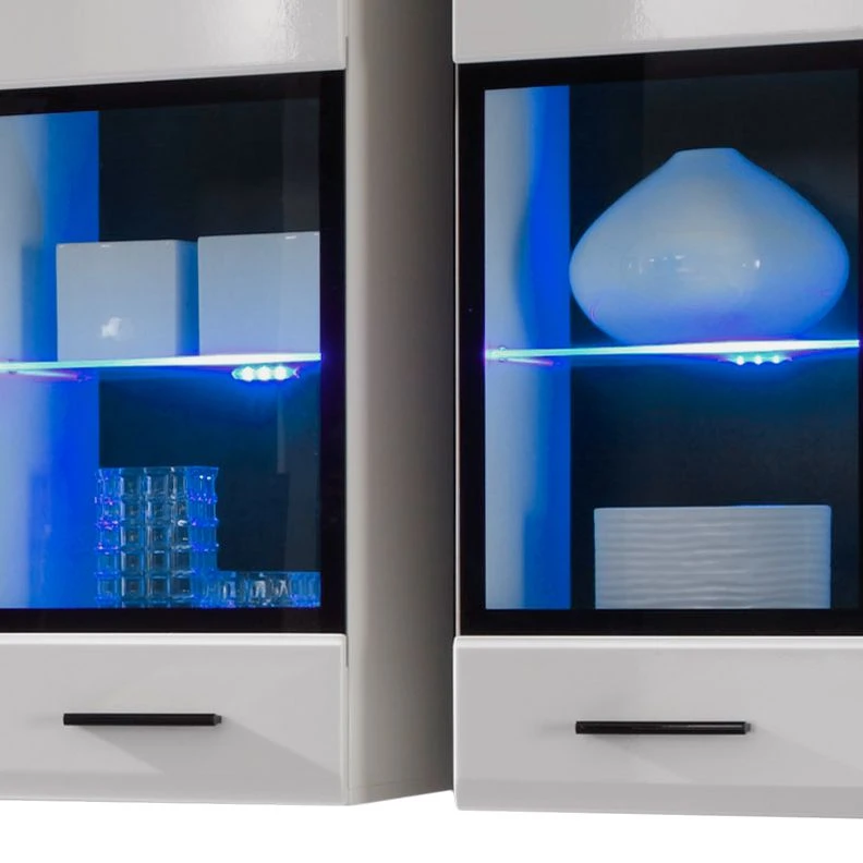 - Hängevitrinen: je 1 Glas-/Holztür mit 1 Glas- & 1 Holzeinlegeboden