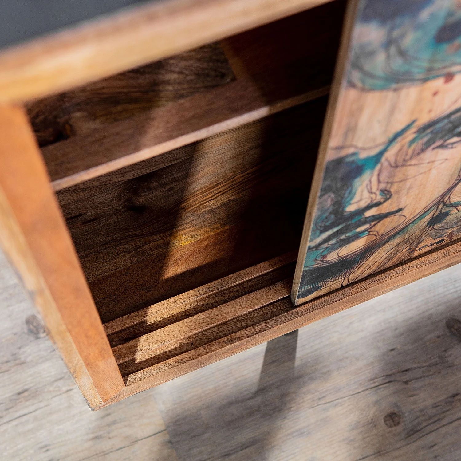 - Front: Massivholz Mango, bedruckt