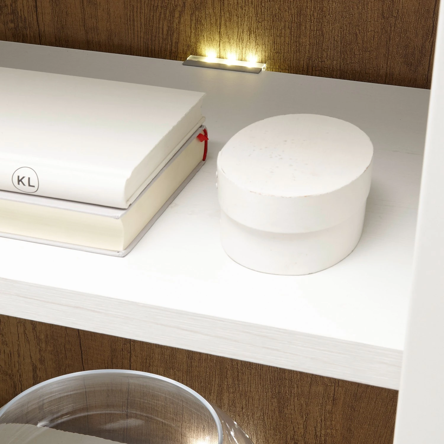 - Lieferumfang: 1 Vitrine, 1 Wandboard, 1 Lowboard & 1 Regal ohne Beleuchtung & Dekoration
