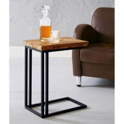 Loftscape Beistelltisch Vulbens – Eiche massiv / Metall – Eiche / Schwarz