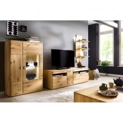 Naturoo Highboard Forge II – Eiche teilmassiv – Balkaneiche Bianco / Eiche Bianco – Glastür rechts