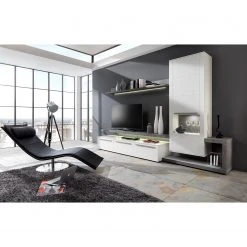 GWINNER Wohnkombination Misano III (2-teilig) – Saharagrau / Balkeneiche – Mit Beleuchtung