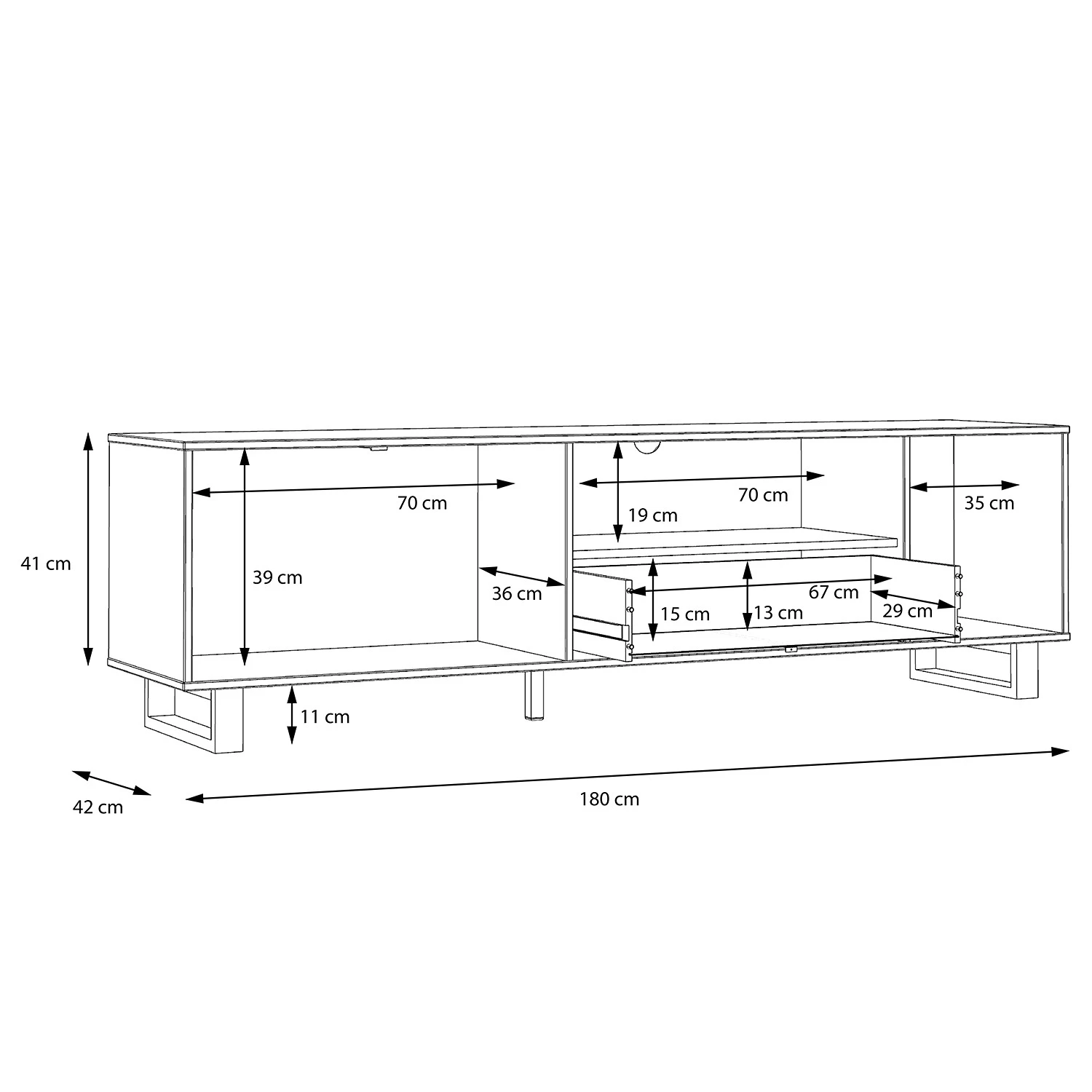 - Innenmaße Schubladen: 66 x 28,5 cm (BxT)
