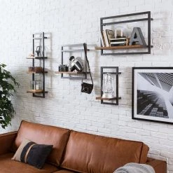 Ars manufacti Wandregal Manchester – Akazie massiv / Metall – Akazie / Anthrazit – 58 x 40 cm